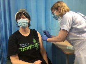 Staff at the Oswestry and Borders Foodbank have received their Covid-19 vaccinations. This will make work at the Foodbank safer for them and create a safer environment for Foodbank clients.